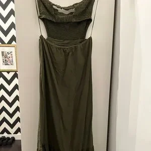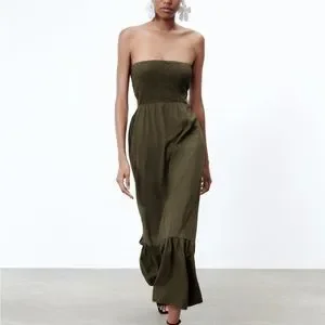 *WORN ONCE* Zara linen blend smocked dress in dark olive green