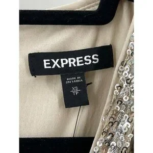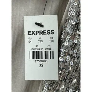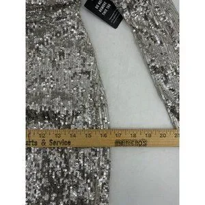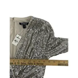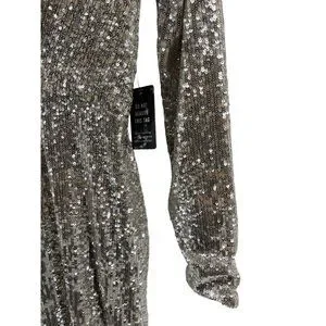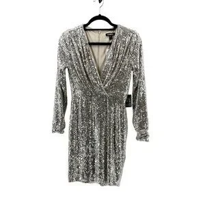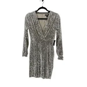 NWT Express Women's Long Sleeve Silver Sequin V Neck Cocktail Party Dress XS