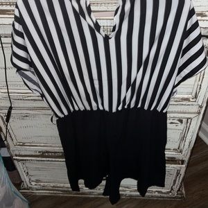 NWOT shein black and white striped romper size one x really stretchy nice 100 percent polyester smoke free home the back keyhole button needs to sewn in but it’s new without tags very comfortable romper shorts are nice too smoke free home
