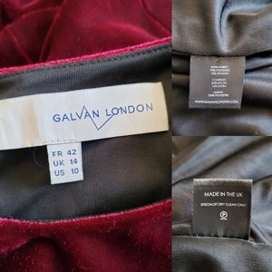 Galvan London Crescent Sheer Panel Thigh Split Velvet Wine Evening Gown Size 10