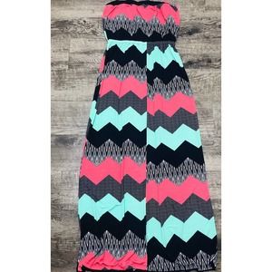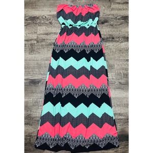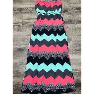Trixxi Geo Print Maxi Strapless Dress Size S ~Pink Green Black ~
