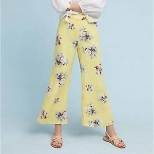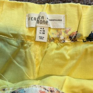 Anthropologie Feather Bone size 6 yellow floral pants Talese