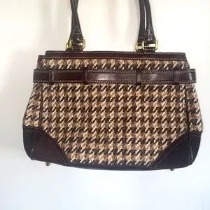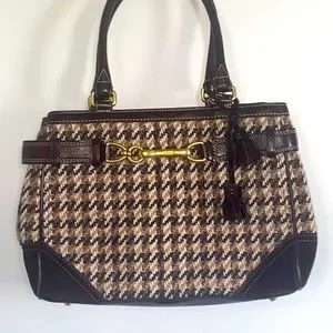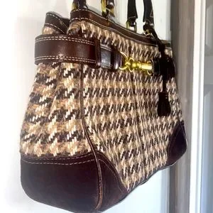 Coach | Bags | F10200 Houndstooth Hand bag | Rare Brown Tweed & leather buckled
