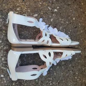 SO Paulene patent white sandals with three flowers. Youth girls size 12. Great condition! Perfect for spring and summer!