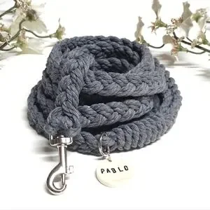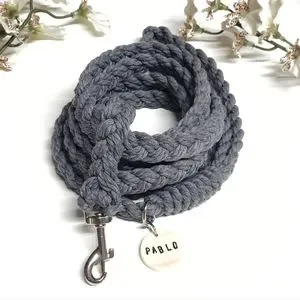 Pablo Dark Grey Macrame Cord Braided Dog Leash