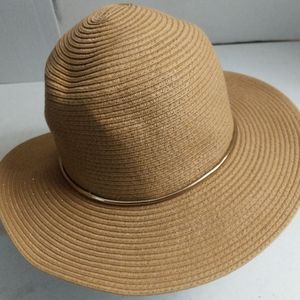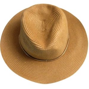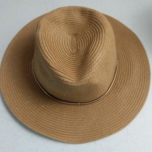 Chico's Women's Floppy Hat Fedora Packable Shapable Straw Gold Accent Glitter