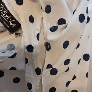 Women's 50s 60s vintage rockabilly, pinup A line cocktail swing dress, size medium. This classic navy blue and white polka-dot knee length swing dress can be styled up or down for any occasion. This dress has a hidden back zipper and a crinoline sewn in the skirt. It is vintage and has a little yellowing under the arms and shoulders as shown in the picture. I absolutely love this dress but it doesn't fit me anymore. The tag doesn't say, but I believe it is 100% cotton.