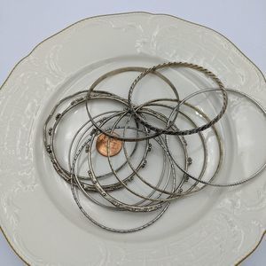 ✨3 for 25 ✨Lot of 11 Silver Tone Textured Bangles