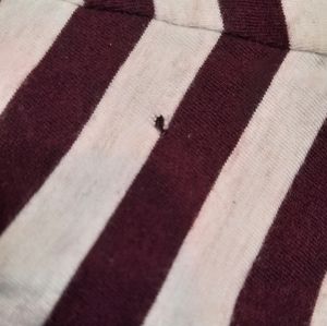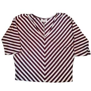 Striped purple and white relaxed fit short shirt. V neck. low cut. Flair sleeves. 1 small pin hole see pictures.