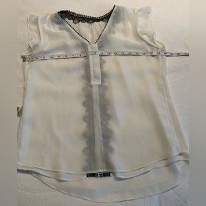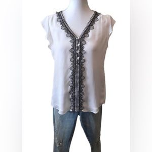 WHBM White Blouse with Black Lace Trim Size 4