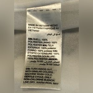 Fully lined. Polyester, Machine wash cold. Imported