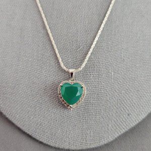 Green Onyx Rhodium Over Silver Heart Necklace, Ring (Sz 7.5), & Earrings