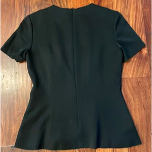 Theory Korla Fountain Structured Short Sleeve Black Blouse sz P = XS