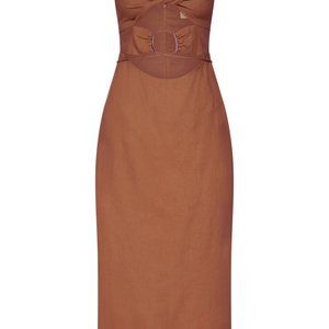 MESHKI Cut Out O Ring Linen Midi Dress - Brown