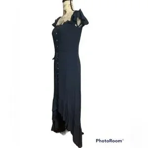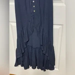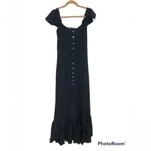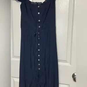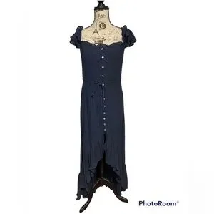Magnolia Boutique Off The Shoulder Button Down High Low Maxi Dress, Navy, Small