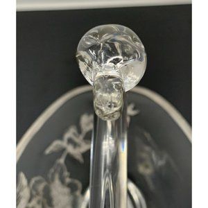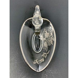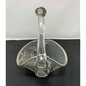 For your consideration is this beautiful, vintage bon bon/trinket dish made by the Duncan and Miller Glass Company in the #30 Pall Mall Swan pattern. It is adorned with heavy sterling silver overlay by the Rockwell Silver Company in the Peony pattern. The #30 Pall Mall line was in production from 1943 until Duncan and Miller went out of business in 1955. This lovely swan dish features a hand blown and stretched gracefully curved neck, with Duncan and Miller’s signature bulb head and long beak. It measures 6” high, 7.5” long, 4.75” wide, all on hand polished and oval 1.5” X 3” base. It’s just waiting for you to fill it with candies or other treats!