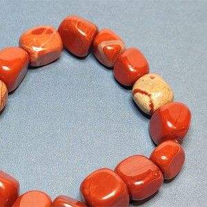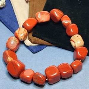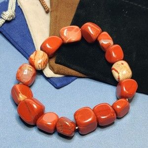 RED JASPER STRETCHY NUGGET BRACELET NATURAL STONE w/ FREE FELT POUCH.
