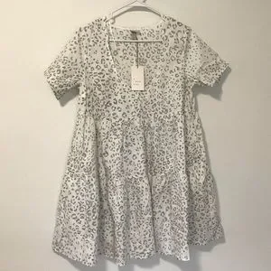 NWT A New Day tiered dress in an adorable black and white pattern. This dress looks cute by itself or over a beat up pair of vintage Levi’s! It’s the perfect transition piece to spring with jeans and a sweater over it and also works for summer or a pool/beach coverup.
