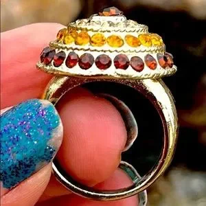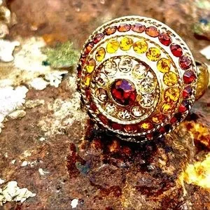 This vintage ring is to die for! Snagged it at a groovy antique store in NYC, I had to have it for my shoppe! Gorgeous, neutral rhinestones encircle the slightly larger center stone like fireflies dancing above the water. It’s everything a vintage cocktail ring should be. Elegant. Showy. Chic!!