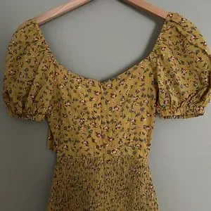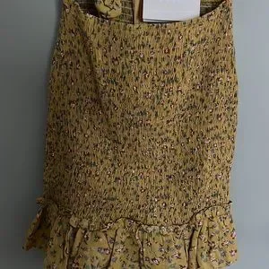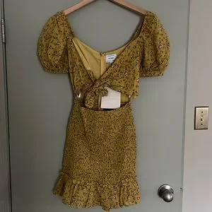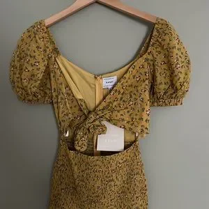 Brand new with tags Sabo Skirt dress. Mustard with floral pattern. Zipper on back. Tie feature at bust with a scrunch in the skirt for comfort.