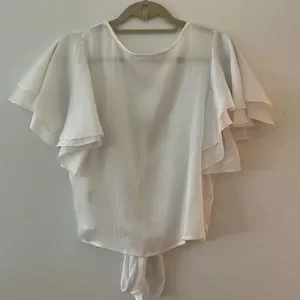 BB Dakota sheer crop top with flutter sleeves and tie at waist with keyhole. Sheer material. Super cute with denim shorts! Good condition!