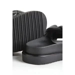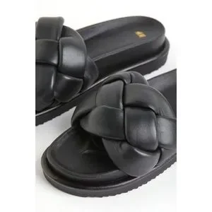 Slides in leather with a wide braided foot strap.