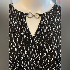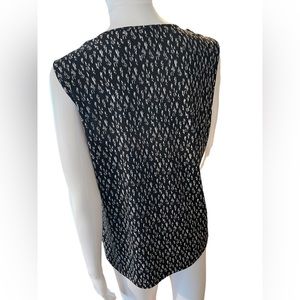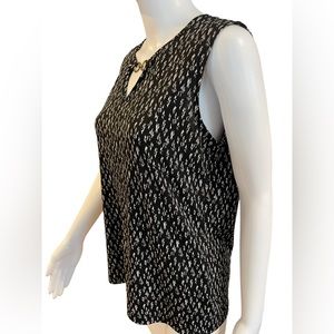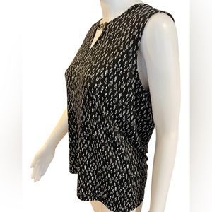 Jones New York Signature Black & White tank with brass/gold accessory in front.