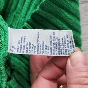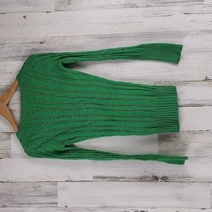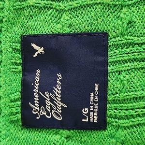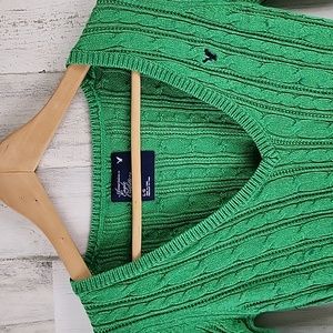 American Eagle Kelly Green cable knit deep vneck slim fit sweater Size Large