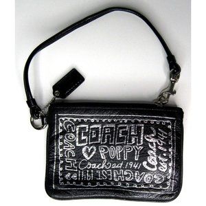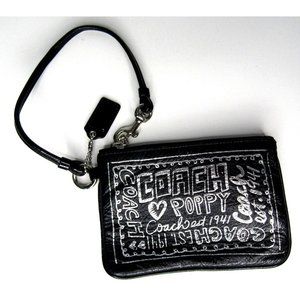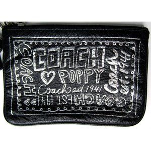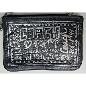 Vintage Coach Poppy Black And Silver Wristlet Purse 6"