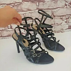 Zara Black Leather Strappy Sandals Stiletto Size 37