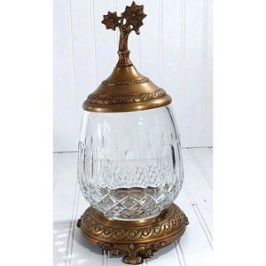 CASTILIAN LEAD CUT CRYSTAL BRONZE PEDESTAL CANDLE LAMP CENTERPIECE BOWL VASE