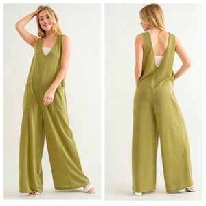15 Relax fit Wide Leg V-neck Jumpsuit With Front Pockets
