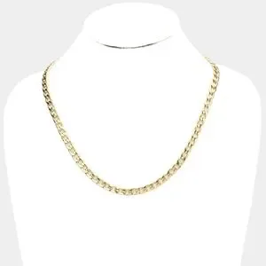 Casual Gold Stainless Steel Curb Link Style Chain Necklace Metal Jewelry