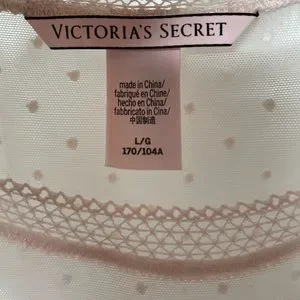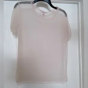 Victoria’s Secret short sleeve picot dot mesh top size Large in ballet pink. Very sheer and pretty.