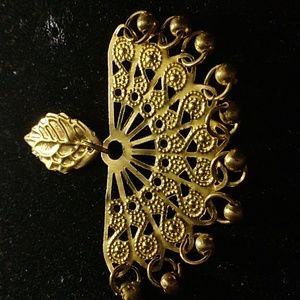 Golden etched leaf and filigree FAN handmade on stainless steel posts for pierced ears.