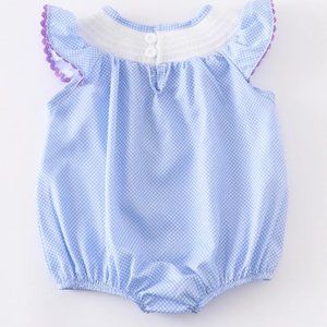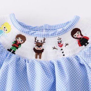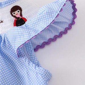Baby Girls Princess Elsa Ana Olaf Frozen Smocked Embroidered Bubble Romper