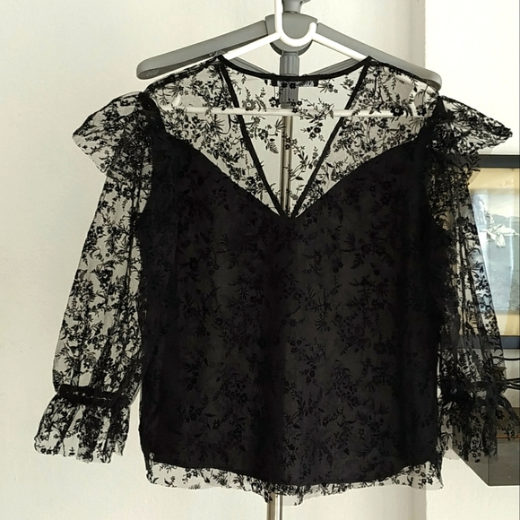 Tulle velvet like floral decal. lined in the front but not on the back .