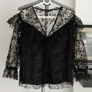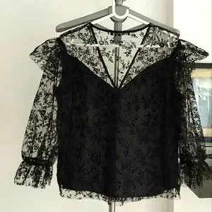 Zara Ruffled Tulle Floral Blouse