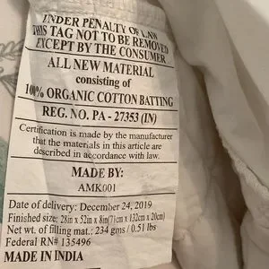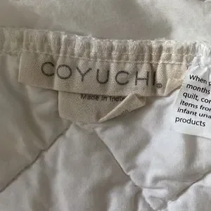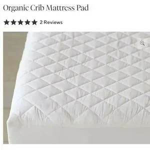 Coyuchi 100% organic cotton quilted crib mattress pad in white. Fits standard crib mattress. Makes crib sleeping super comfy and safe for baby, and protects crib mattress. Free of chemicals and flame retardant and GOTS certified. One tiny spot as shown in picture otherwise perfect condition. This was barely used as we quickly transitioned our child from crib to toddler bed. All items shipped within 24 hours of purchase. Offers welcome.