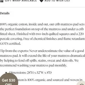 Coyuchi organic white quilted crib mattress pad organic cotton GOTS certified