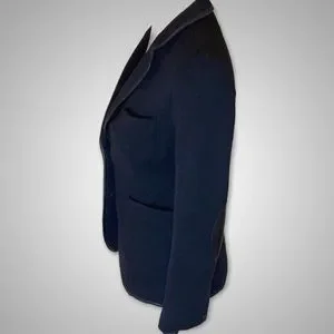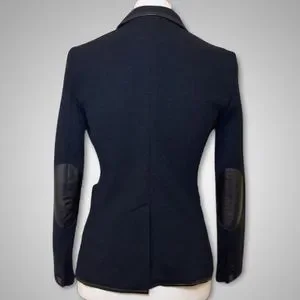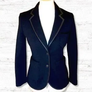 Wool blazer with leather trim and elbow patches, can be dressed up or down. Barely worn, in excellent condition.