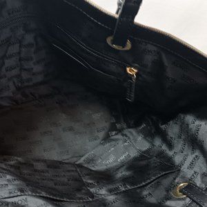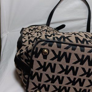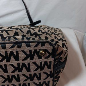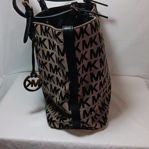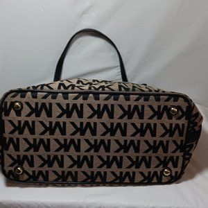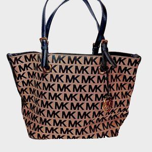 MICHAEL KORS Jet Set Signature Grab Bag Tote Tan/Black Jacquard and Leather