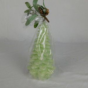 Christmas Tree Candle Light Green Glitter Wax New 8.5" Tall Holiday Design