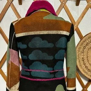 Boho chic Custo Barcelona retro multi-color printed & hot pink faux fur lined jacket.