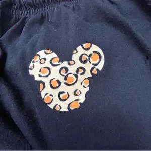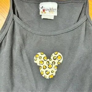 Disney 100% cotton black tank with matching pant. Both with animal print Disney ears logo. Barely worn. Tank features spaghetti straps and measures 14 1/2” across the chest, 15 1/2” across the bottom hem and 22” in length. Bottoms have an elastic waistband and drawstring closure. Waist measures 12” flat lay but can accommodate up to 14” comfortably, 39 1/2” total length, 28” inseam, 13 1/2” rise, and 9” across the bottom hem of the leg. Bundle with one or more additional items from my closet for further savings!