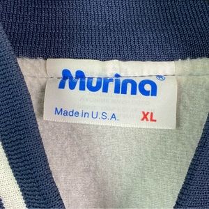 Vintage 1991 Navy Blue Satin Baseball Bomber Jacket Striped Trim XL