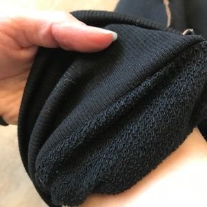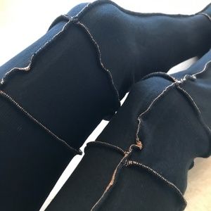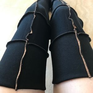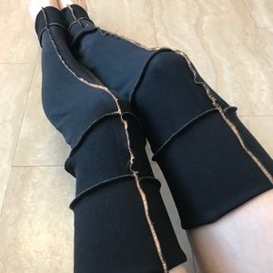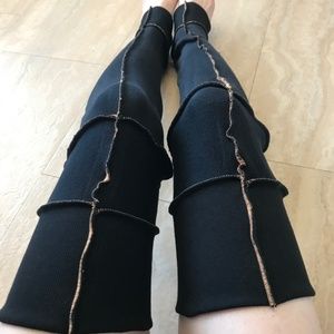Incredibly soft! Black sweatshirt legwarmers with funky orange stitching. Over the knee length. Made from designer upcycled materials. One of a kind!