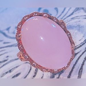 NWOT Necklace/Ring Set in Glamour Pink & Rose Gold Fill- Artificial Quartz Gems