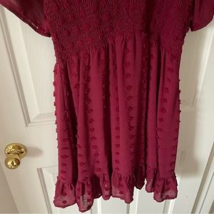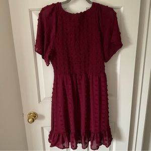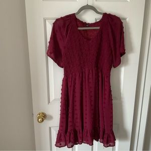 Maroon Short Sleeve Knee Length Dress, Size Large