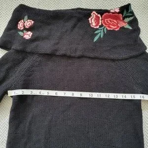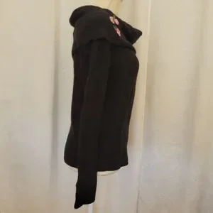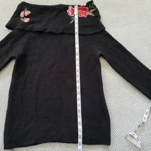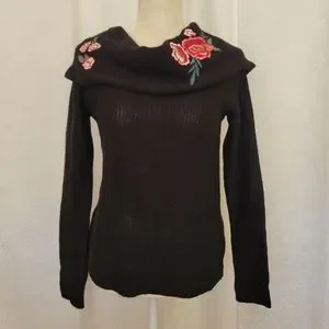 NWT- Black cowl neck knit with embroidered flowers.
